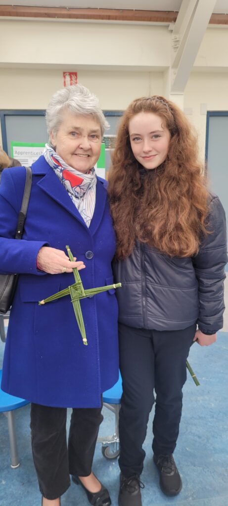 St Brigid is one of Ireland’s patron saints and is closely associated with kindness, hospitality, and care for the poor. She is remembered for her generosity and strong faith, as well as for her close connection to nature and the land. St Brigid’s Day, celebrated on the 1st of February, marks the beginning of spring and reminds us of new beginnings. The making and blessing of St Brigid’s crosses continues to be a powerful symbol of these values, and it was fitting that our students and grandparents could come together to honour her legacy.